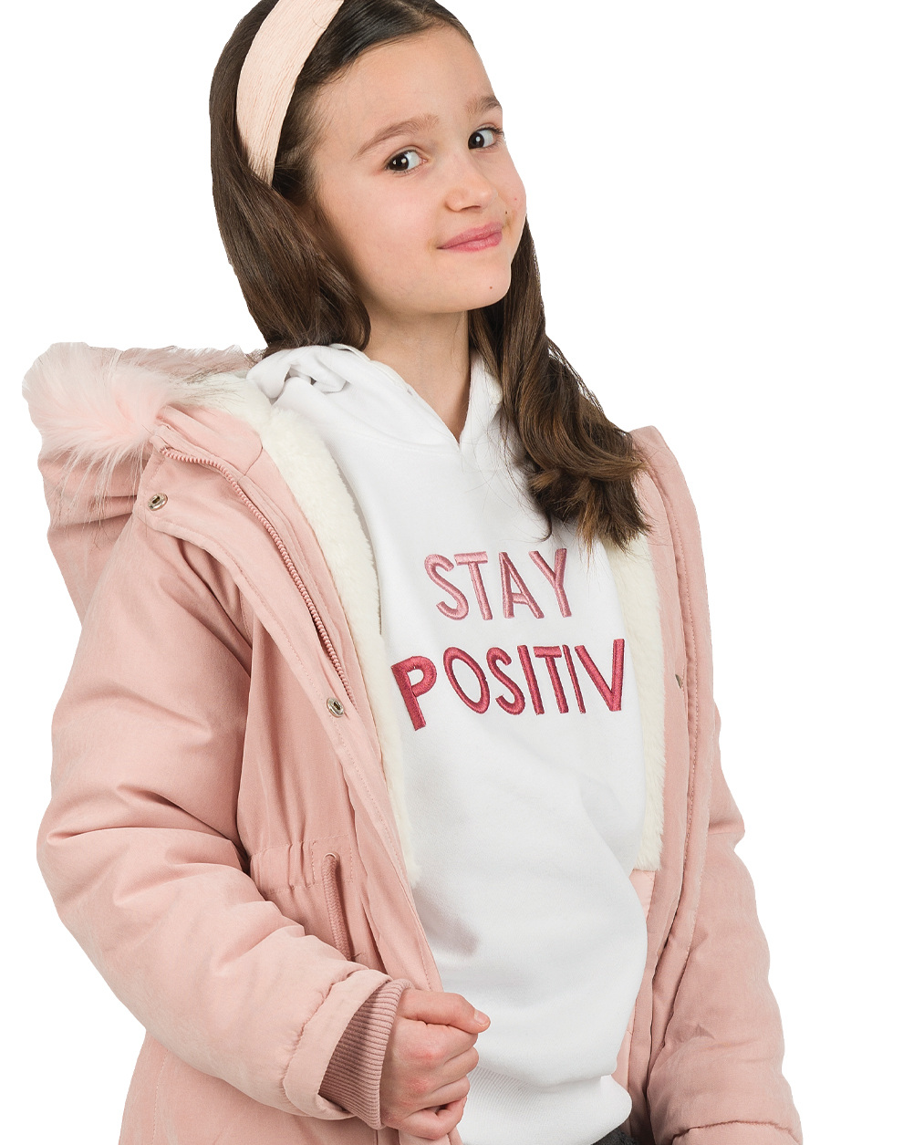 HomeBlouse Girl΄s fleece blouse with hood and embroidery