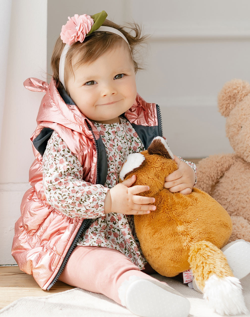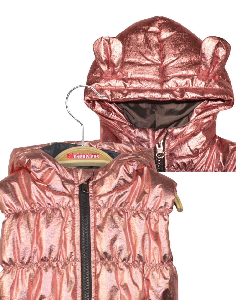 Αμάνικο γιλέκο σε μεταλλική απόχρωση με κουκούλα για βρεφικό κορίτσι