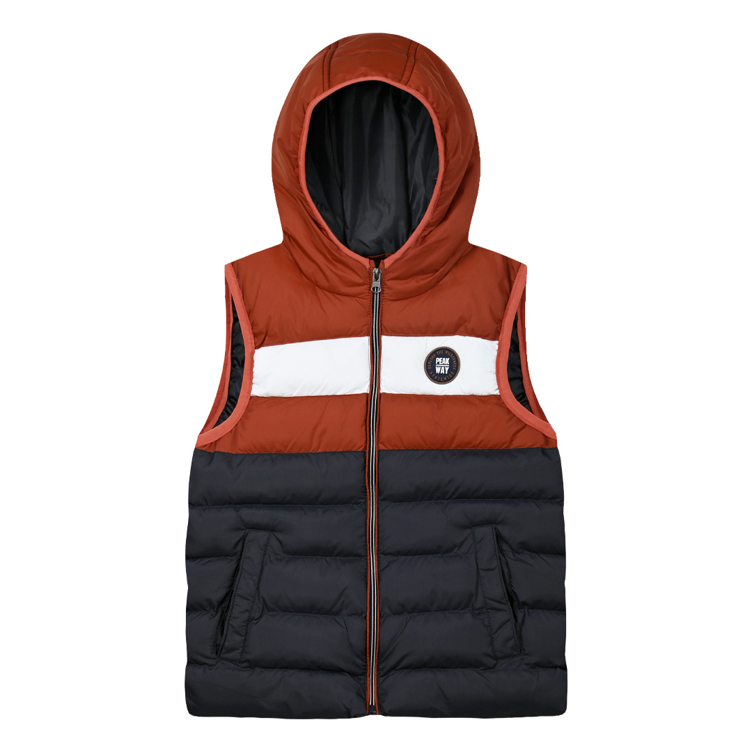 Αμάνικο καπιτονέ μπουφάν με κουκούλα για αγόρι.Μπορεί να συνδυαστεί πάνω από πλεκτές ή φούτερ μπλούζες ή να φορεθεί και σκέτο τις πιο ζεστές μέρες του χειμώνα