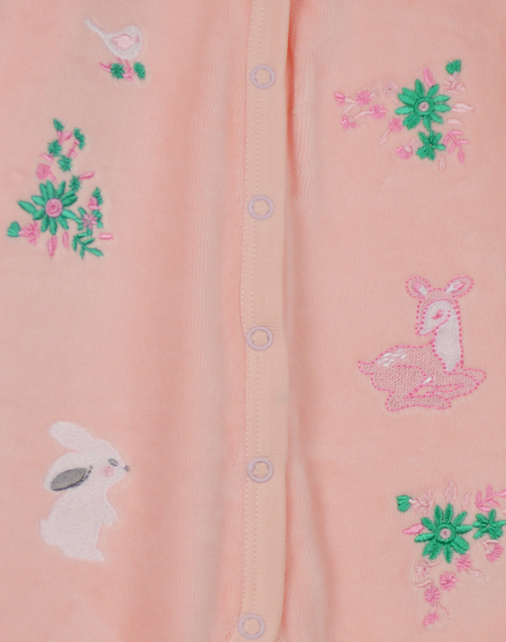 Bελουτέ φορμάκι με κέντημα και τρουκς μπροστά για εύκολο άνοιγμα για βρεφικό κορίτσι (0 -15 Μηνών)