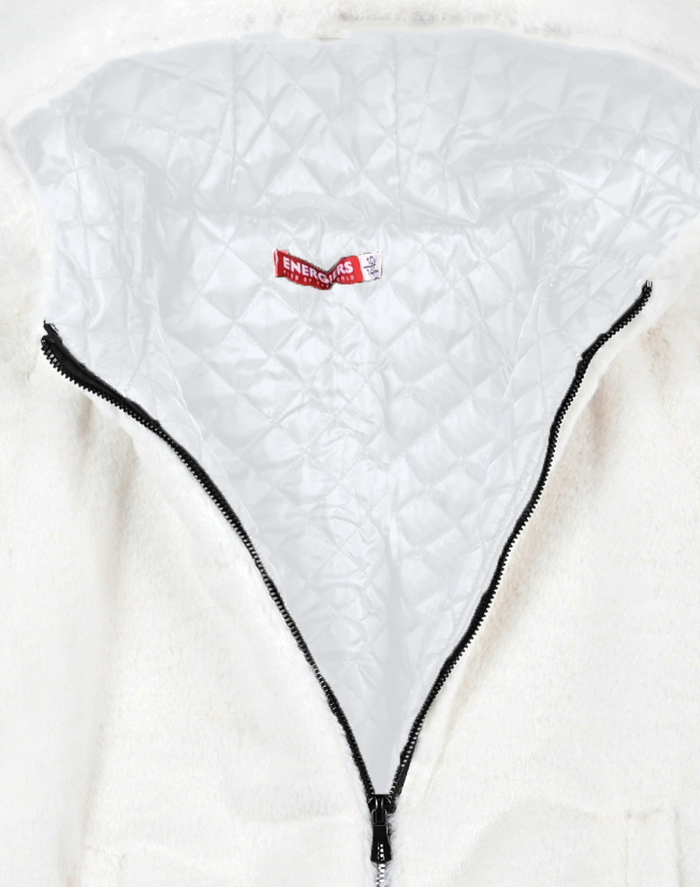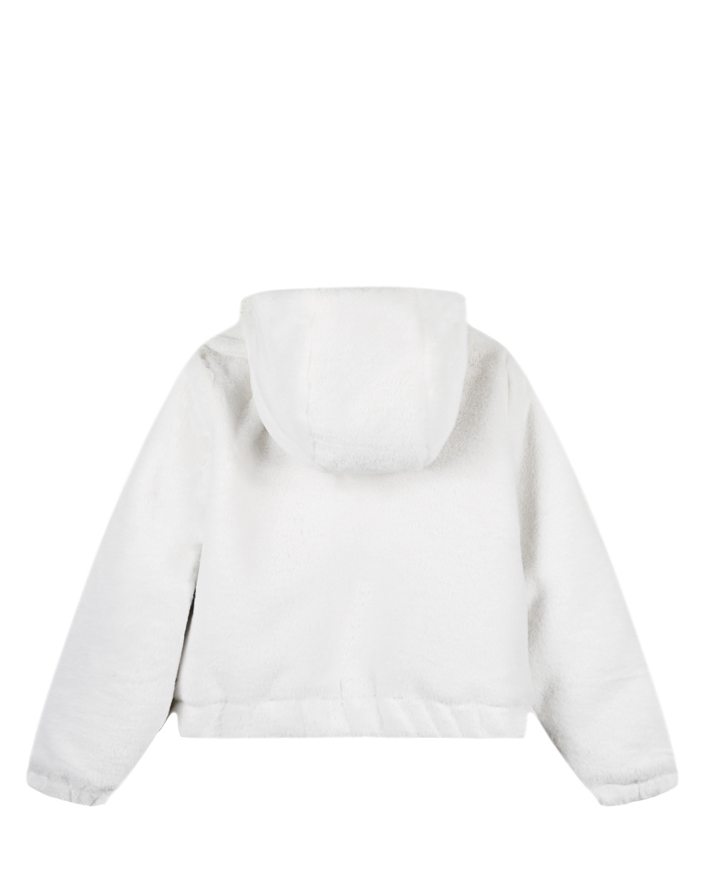 Μπουφάν από συνθετική γούνα με κουκούλα, φερμουάρ και τσέπες για κορίτσι