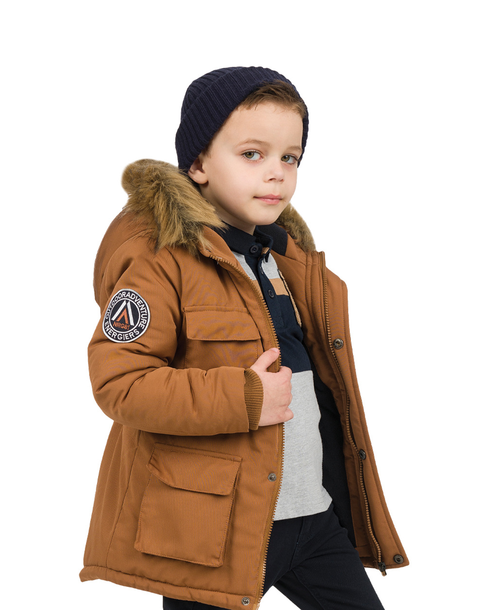 Μπουφάν για αγόρι με εσωτερική επένδυση και αποσπώμενη κουκούλα