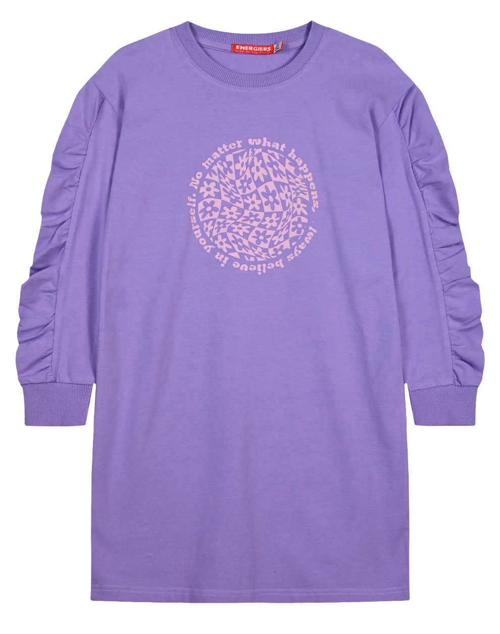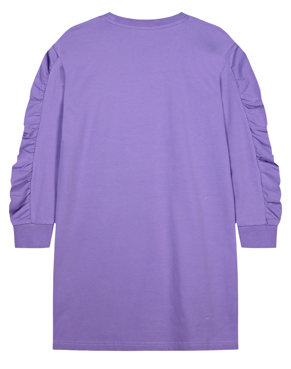 Φόρεμα φούτερ με πεσμένο ώμο και μάζεμα στα μανίια και τύπωμα για κορίτσι