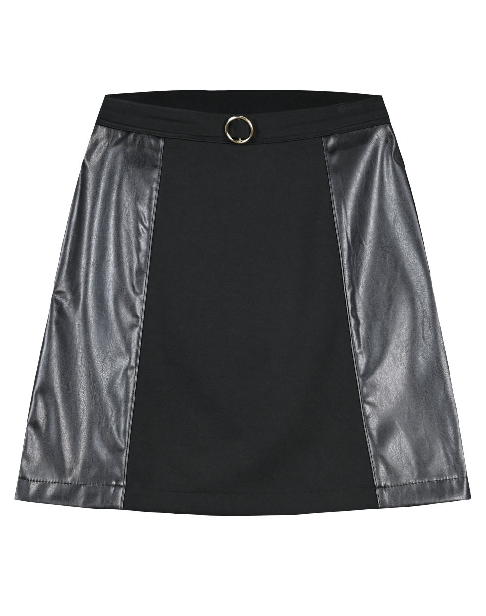 Φούστα με ένθετα από δερματίνη στα πλαινά και λάστιχο στην μέση με διακοσμητική αγκράφα για κορίτσι
