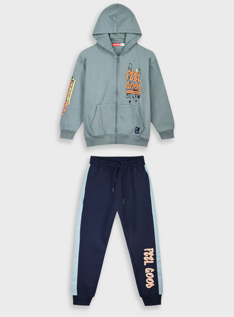 Φούτερ φόρμα 2 τεμαχίων με ζακέτα με κουκόυλα με τύπωμα για αγόρι