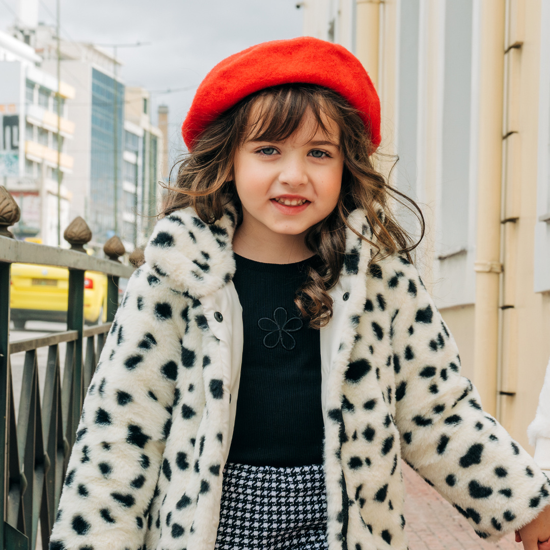Μπουφάν γουνάκι πουά για κορίτσι, με μοναδικό σχέδιο που θα προσθέσει μια δόση θηλυκότητας στο ντύσιμό της! Μοναδική και μοδάτη, θα την λατρέψει