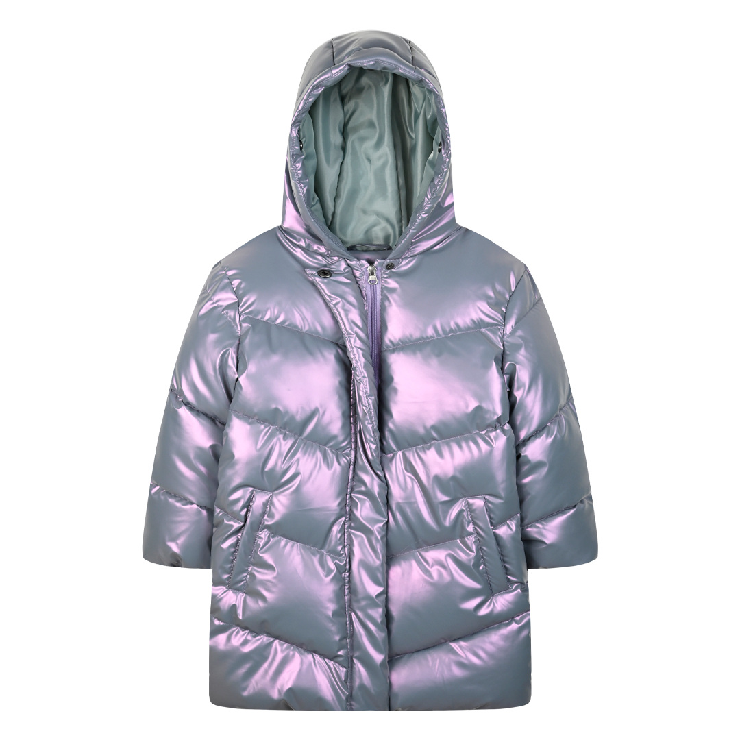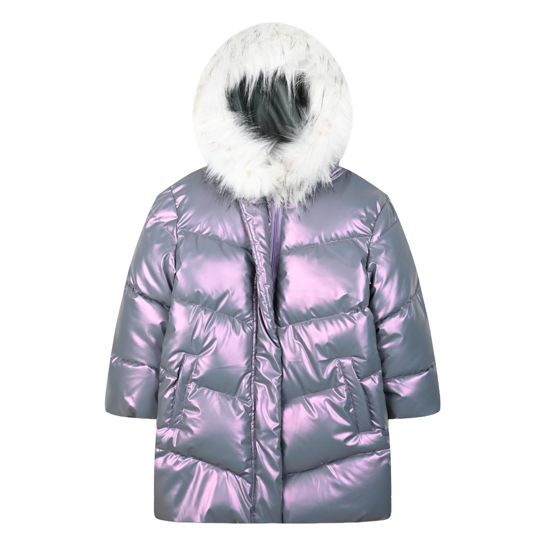 Παιδικό μεταλιζέ μπουφάν με κουκούλα και αποσπώμενη γούνα. Είναι ιδανικό για τις κρύες ημέρες του χειμώνα!