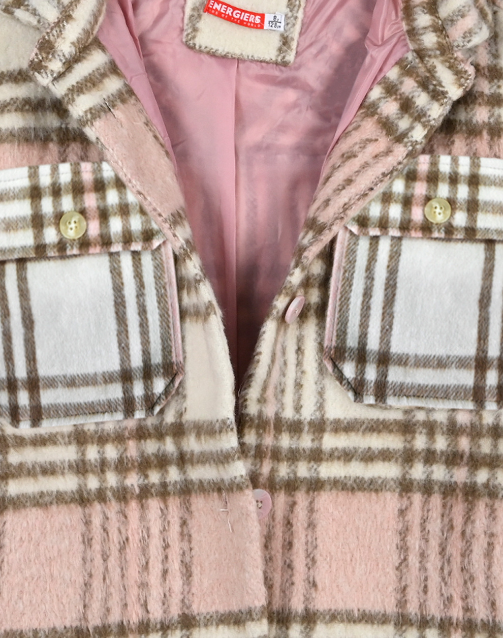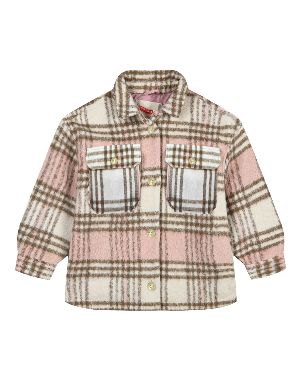 Oversized καρώ μπουφάν τύπου πουκάμισο με τσέπες, μανσέτα με κουμπί, πατιλέτα με κουμπιά και φόδρα για κορίτσι
