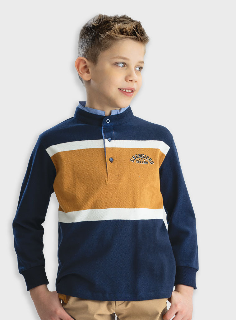 Πικέ μακρυμάνικη μπλούζα με μάο γιακά για αγόρι