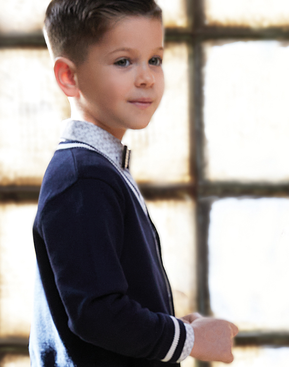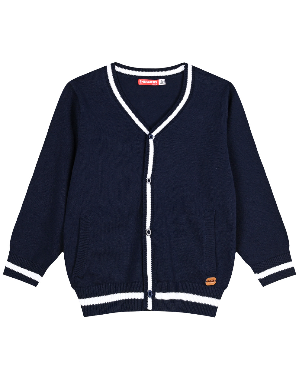 Πλεκτή βαμβακερή ζακέτα για αγόρι με τσέπες στο πλάι και κουμπάκια