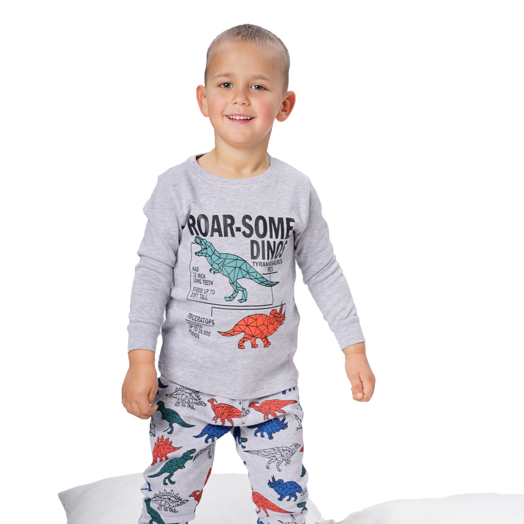 Πυζάμα με τύπωμα και εμπριμέ παντελόνι για αγόρι με δεινόσαυρους με απόλυτη άνεση για τον ύπνο του μικρού σας! Θα τον συνοδεύσει σε έναν γλυκό και ξεκούραστο ύπνο!