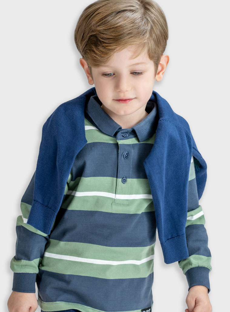 Ριγέ μακρυμάνικη μπλούζα πόλο για αγόρι