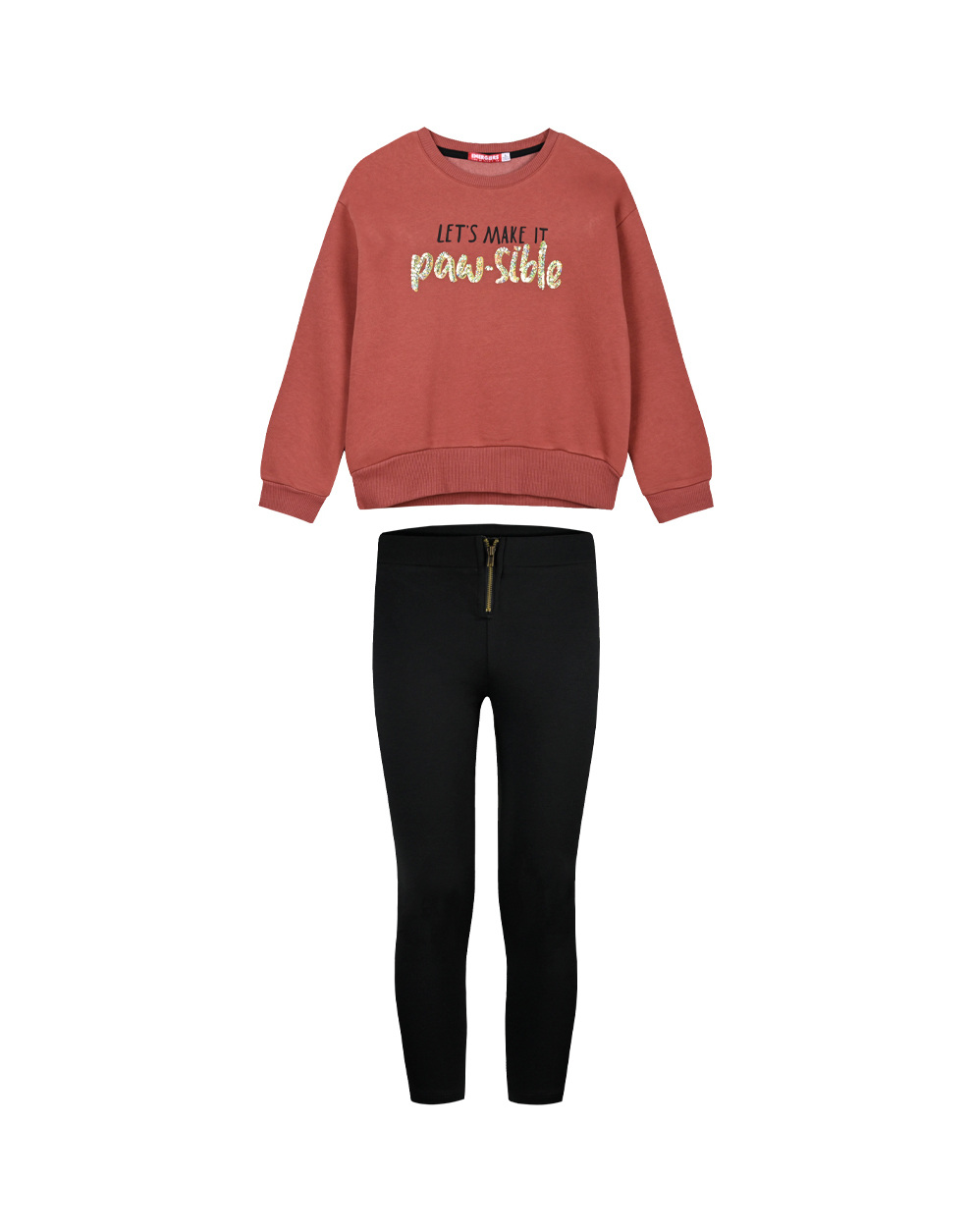 Σετ από μπλούζα φούτερ με τύπωμα και παγιέτες με κολάν με φερμουάρ και πολύχρωμες λωρίδες με γκλίτερ λεπτομέρειες για κορίτσι