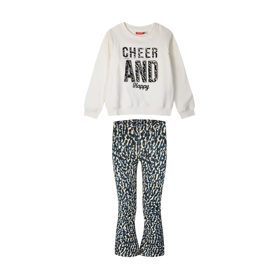 Παιδικό σετ για κορίτσι, φούτερ μπλούζα με μοντέρνο και ιδιαίτερο τύπωμα και κολάν καμπάνα animal print! ακτινοβολεί στυλ και προσωπικότητα! Ένα σετ που ακτινοβολεί στυλ και προσωπικότητα