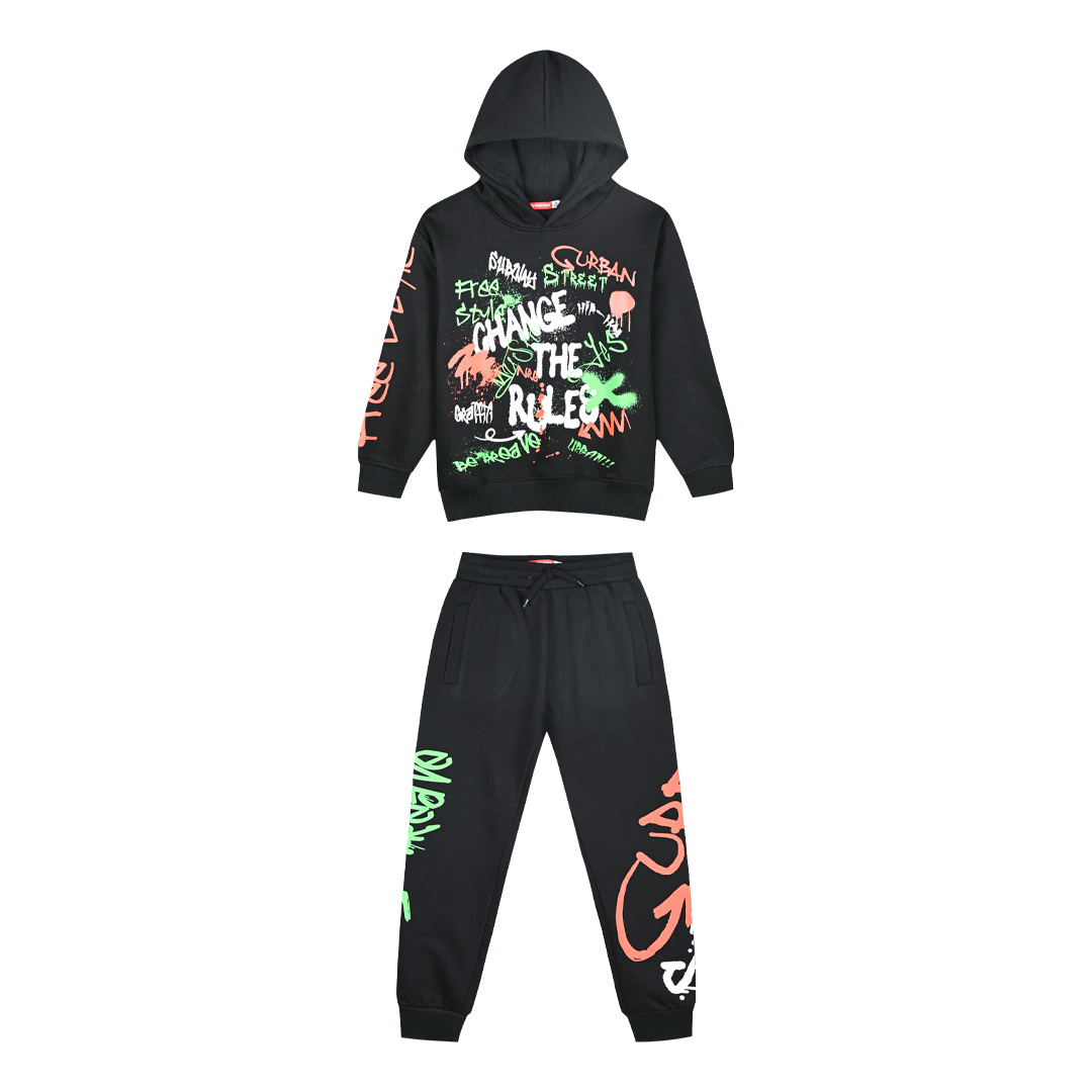 Φόρμα φούτερ με κουκούλα και τύπωμα για αγόρι,προσφέρει άνεση και στυλ