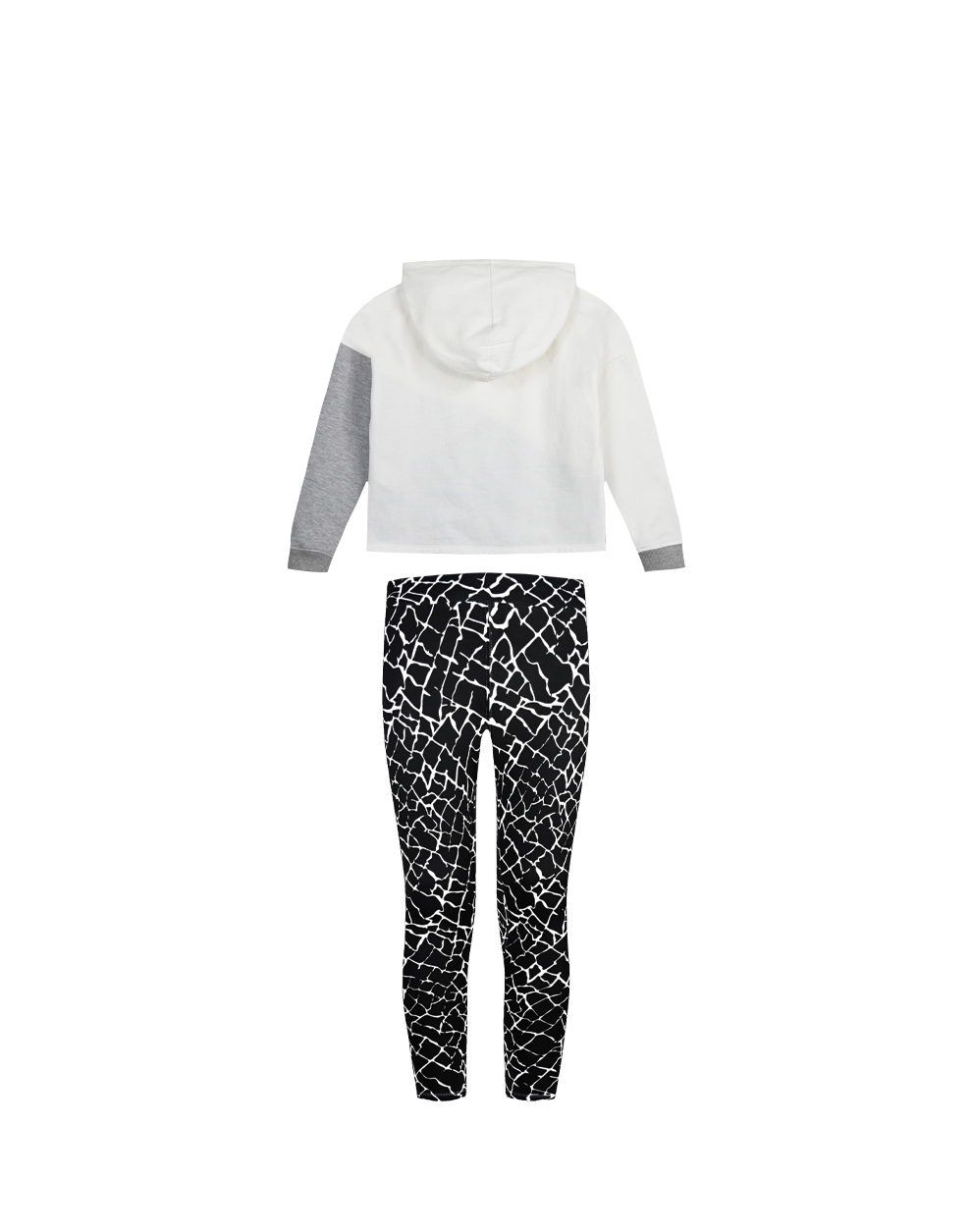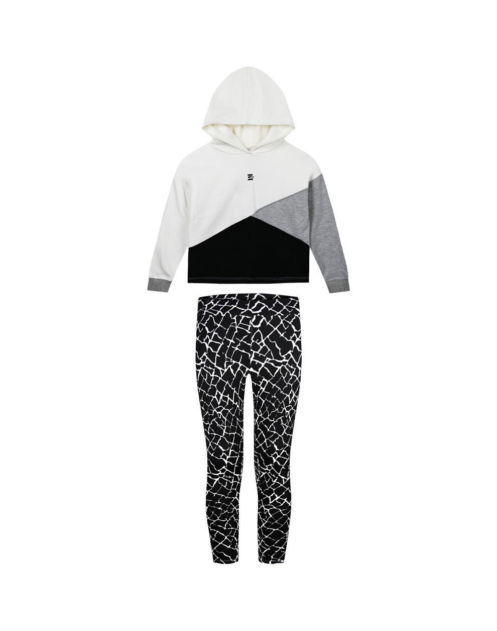 Σετ τρίχρωμη φούτερ μπλούζα με κουκούλα και μακρύ κολάν εμπριμέ για κορίτσι