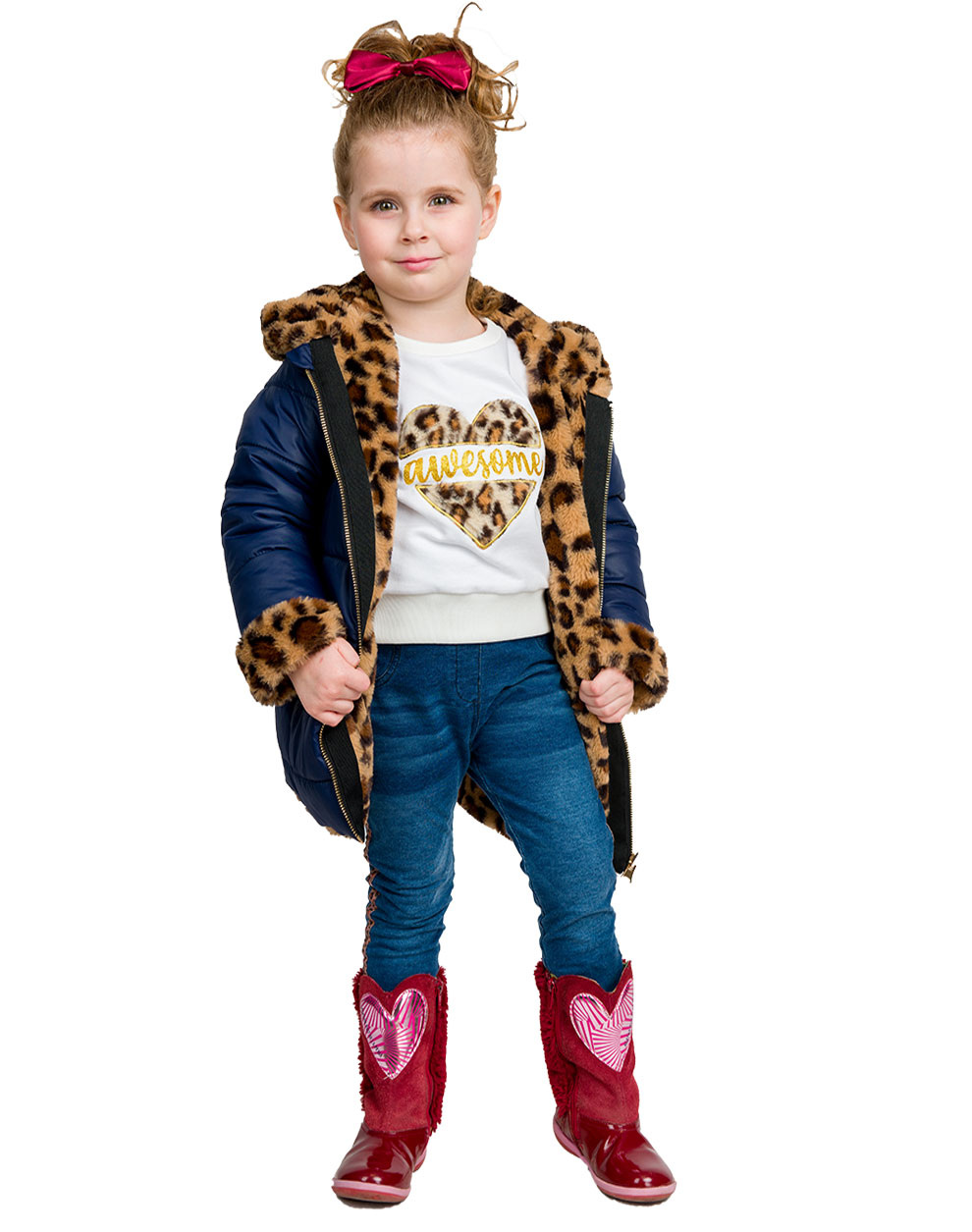 Αρχική σελίδαΕπανωφόρι Τζάκετ διπλής όψης με γούνα animal print για κορίτσι