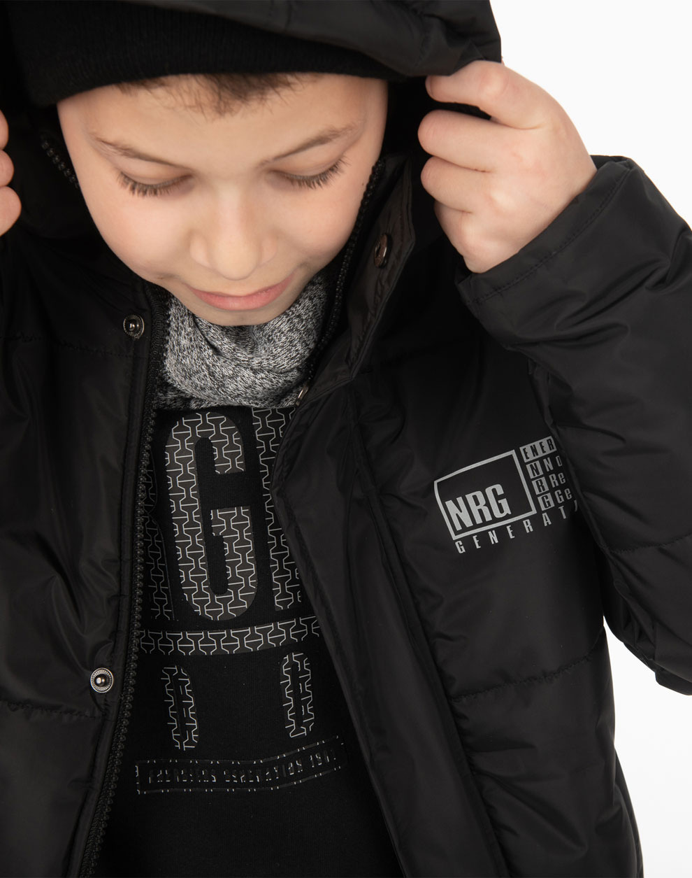 Τζάκετ, μονόχρωμο με κουκούλα για αγόρι. Διαθέτει εσωτερική πολυεστερική επένδυση.