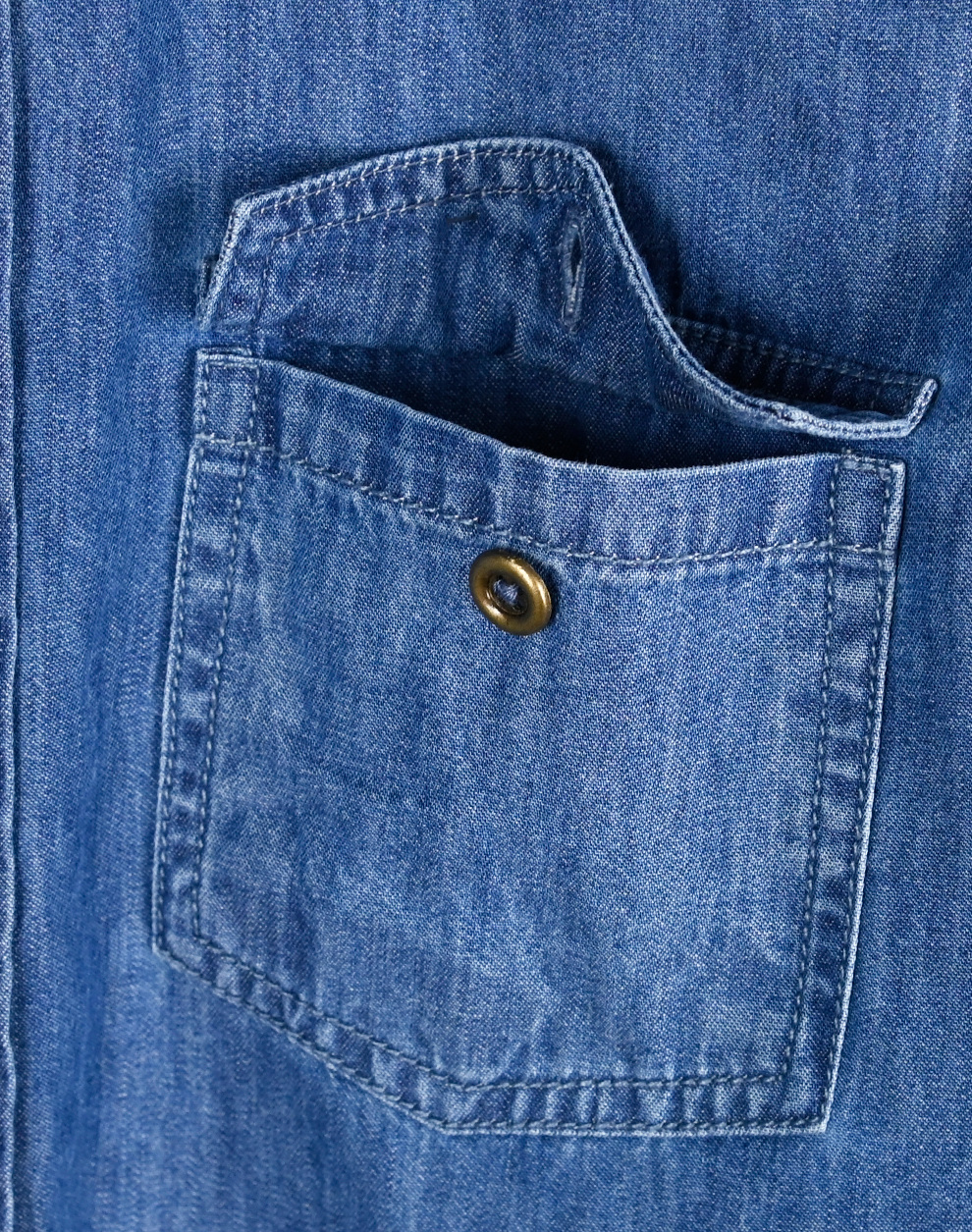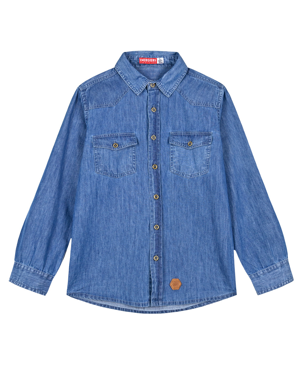 Τζην πουκάμισο με τσέπες και μεταλλικά κουμπιά για αγόρι
