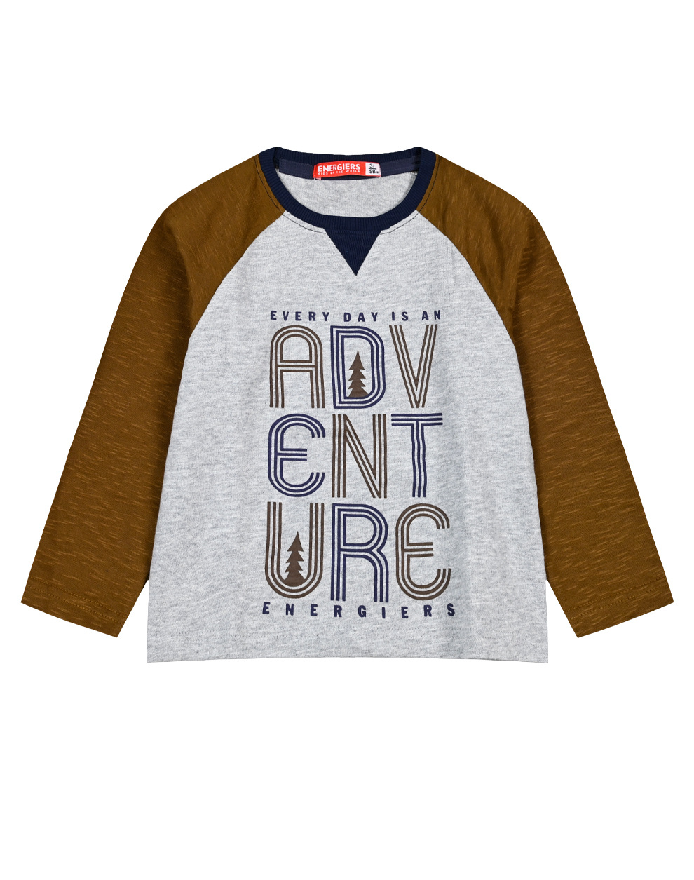 Βαμβακερή μπλούζα δίχρωμη με τύπωμα για αγόρι