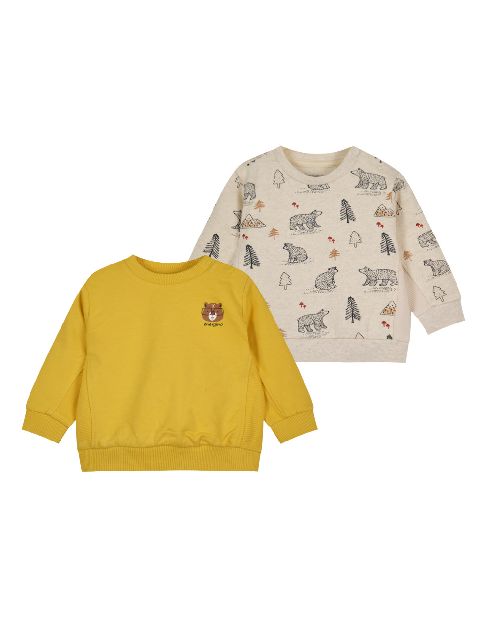 Βρεφική μπλούζα για αγόρι, σετ 2 τεμαχίων αχνούδιαστο φούτερ. Μια μονόχρωμη μπλούζα και μία με allover τύπωμα.(Ηλικία: 3 Μηνών – 18 Μηνών)