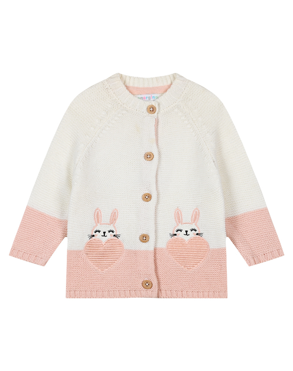 Βρεφική δίχρωμη πλεκτή βαμβακερή ζακέτα για κορίτσι.(Ηλικία:3 Μηνών- 18 Μηνών)