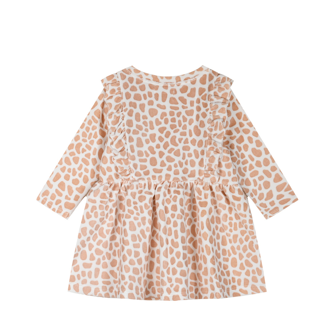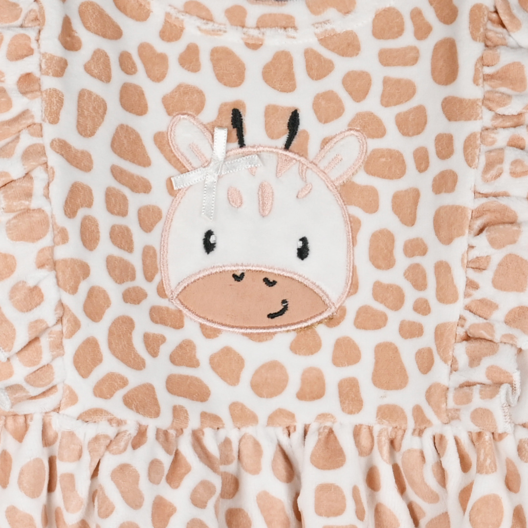 Βρεφικό εμπριμέ βελουτέ φόρεμα με κέντημα και ασορτί κορδέλα για κορίτσι (3 – 18 μηνών), για τις απογευματινές σας βόλτες.