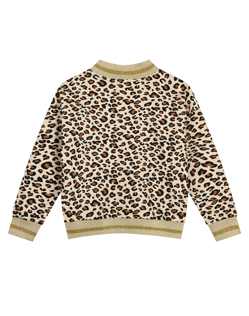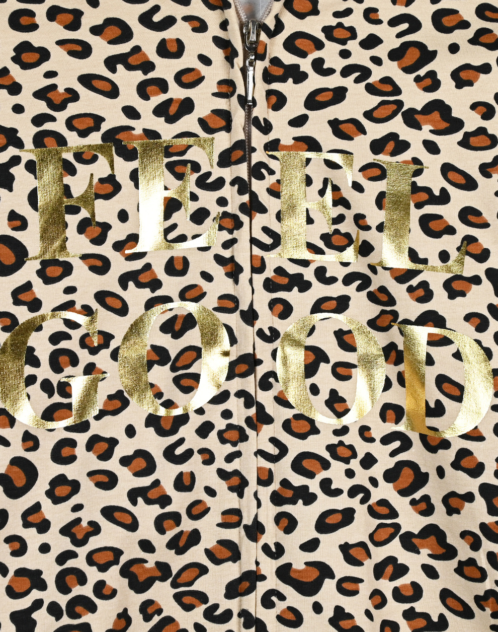 Ζακέτα φούτερ animal print λεοπάρ με ελαφρύ χνούδι και μεταλικό τύπωμα στο στήθος για κορίτσι
