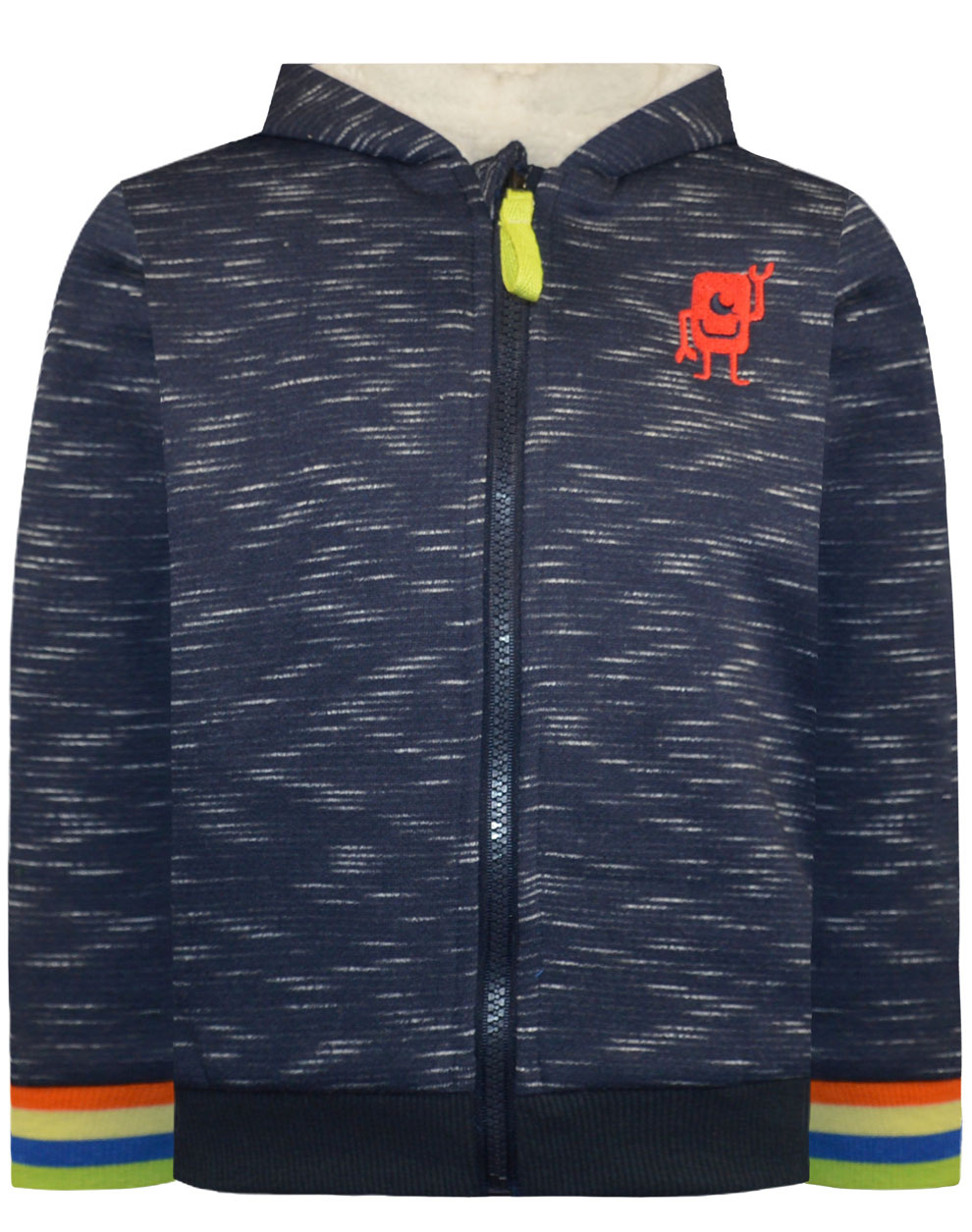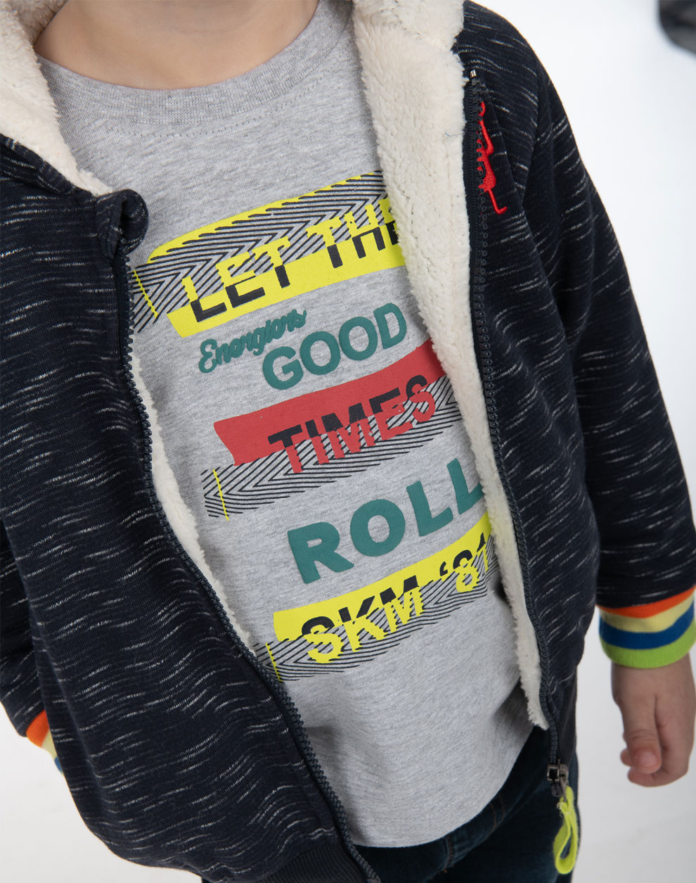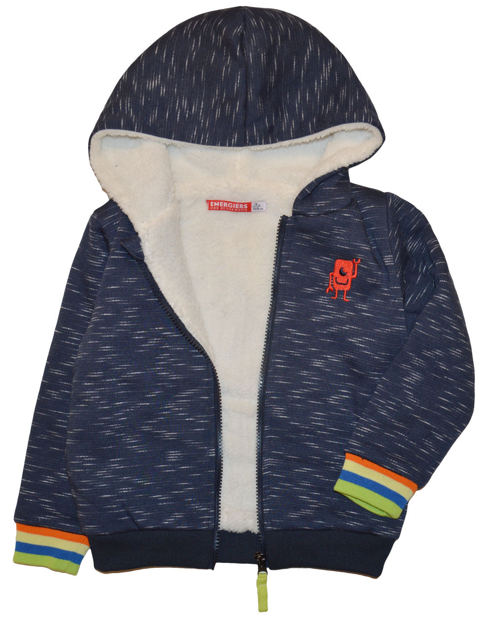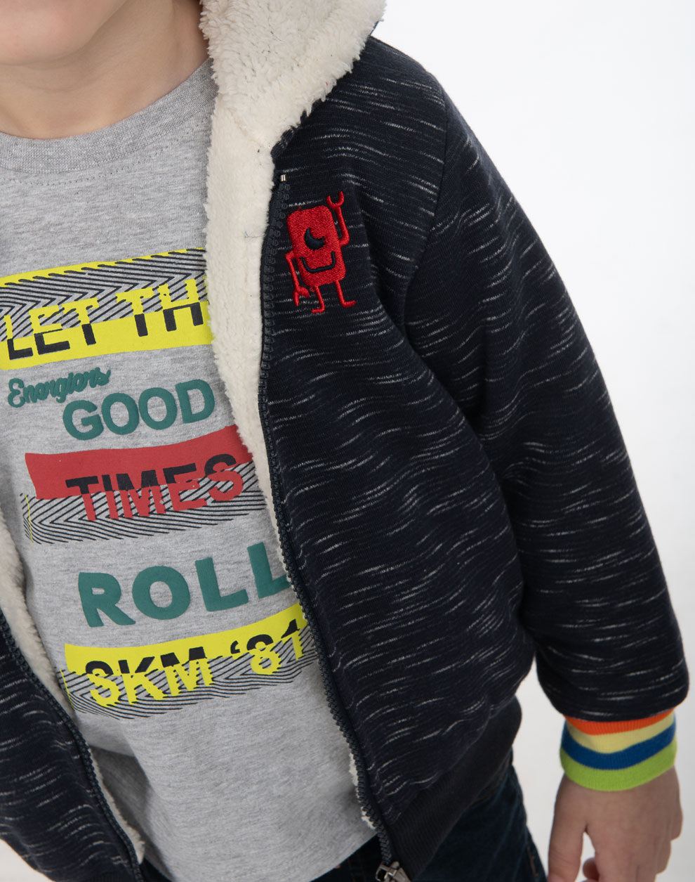 Φούτερ ζακέτα με κουκούλα και εσωτερική γούνινη επένδυση με κέντημα για αγόρι